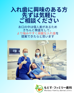 入れ歯で悩んでいる方、歯がなくなり噛めれるようにしたい方はぜひご連絡お待ちして」おります!